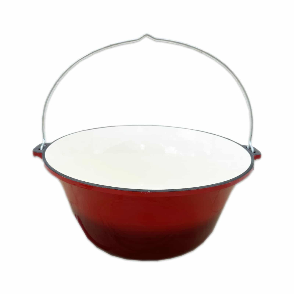 Este fabricat din fonta pura, ceea ce permite mentinerea constanta si uniforma a caldurii in vas pe toata durata prepararii alimentelor. Manerul ofera o prindere sigura si posibilitatea de a fi folosit pe un trepied de ceaun. Pentru a preveni ruginirea, acest ceaun din fonta are un strat de vopsea emailat. Prin urmare, inainte de prima utilizare, se recomanda incalzirea ceaunului cu apa si curatarea lui cu detergent.