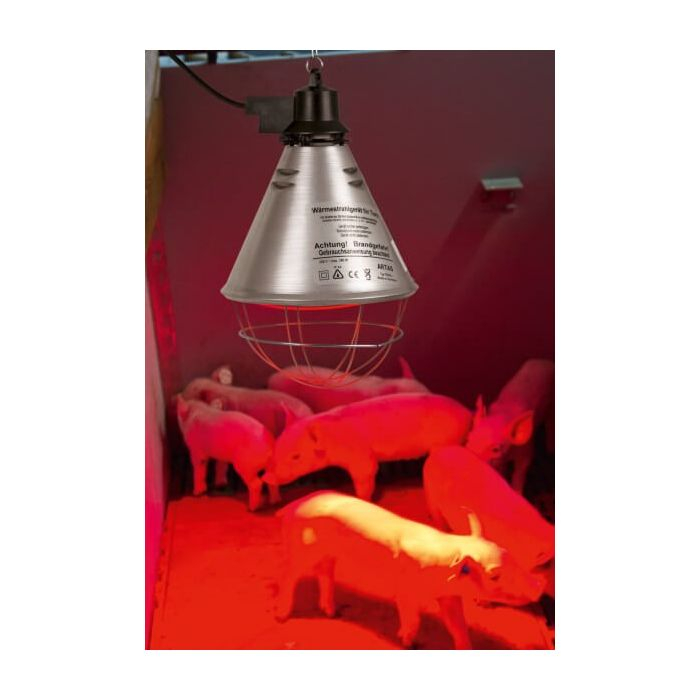 Suport pentru bec infrarosu cu cablu de 2.5m, are cadran de aluminiu cu diametrul de 21 cm, are 6 fante de ventilatie pentru o mai buna circulare a aerului. Este prevazut cu lant de prindere, greutate maxima de 20 kg. Este ideal in ferma, pentru cresterea pasarilor si a porcilor sau in gospodarie, pentru a fi suspendat, si utilizat impreuna cu un bec infrarosu, ce se comanda separat.