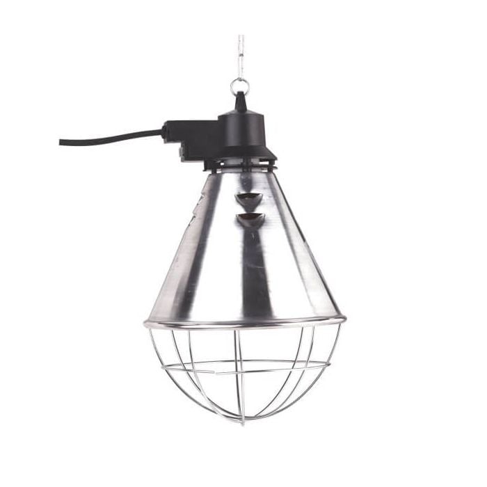 Suport cu economizor pentru bec infrarosu cu abajur din aluminiu de 21 cm ø, cu cablu cu lungime de 2.5m. Are un comutator care permite reducerea puterii consumate cu 50%, se actioneaza manual. Are 6 fante de aerisire pentru o circulatie mai buna a aerului. Are lant pentru atasare- greutate maxima 20 kg. Becul se achizitioneaza separat, nu este inclus.