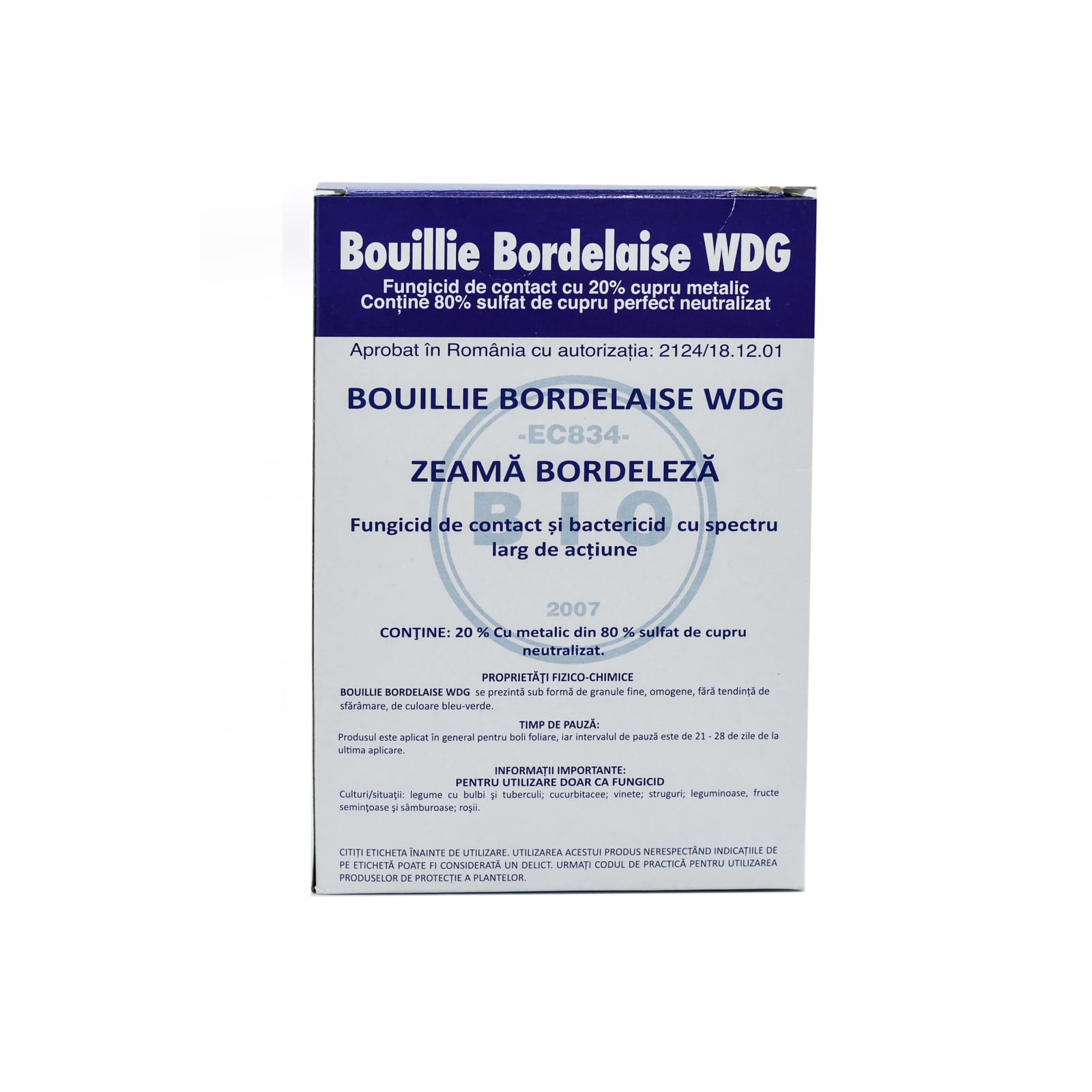 Zeama bordeleza (Bouille Bordelaise WDG), fungicid de contact, pe baza de cupru, care controleaza mai multe boli cauzate de ciuperci si bacterii: alternarioza, rapan, foc bacterian, ciuruire, patare unghiulara etc.