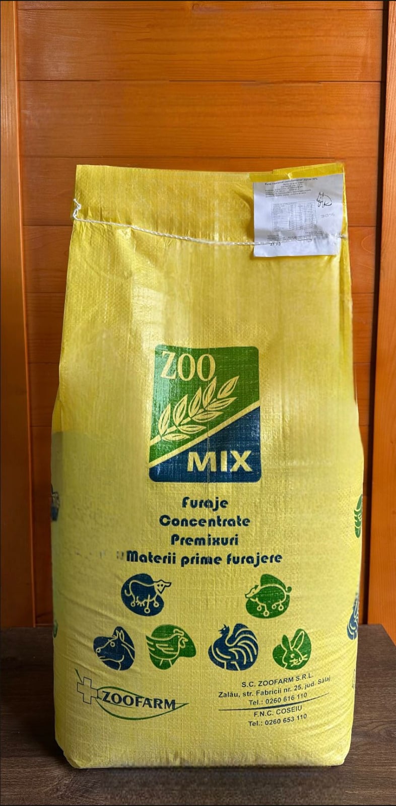 INGRENDIENTE: srot soia (OMG), faina furajera porumb, srot floarea soarelui, premix , carbonat de calciu