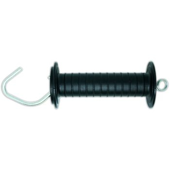 Maner simplu cu carlig pentru poarta gard electric, se poate folosi cu fir sau banda. Este recomandat folosirea impreuna cu un izolator poarta.