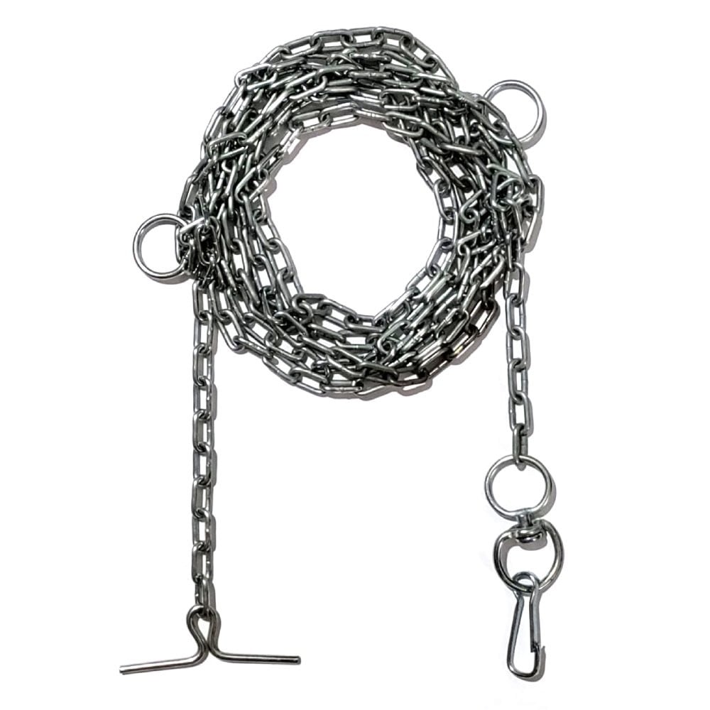 Lant confectionat din zale de otel, ideal pentru legarea cainele in curte. Produsul are grosimea de 4mm, lungimea de 4,5m si un are atasat o carabina rotativa. Este recomandat cainilor de talie mica spre medie.