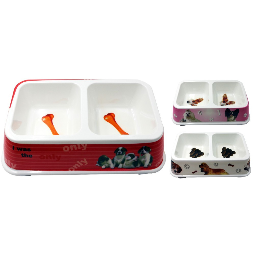 Castron dublu confectionat din melamina, este rezistent, usor de curatat, prevazut cu garnituri de cauciuc antiderapante. Este disponibil in diametre diferite, fiind ideal pentru hrana pisicutelor.