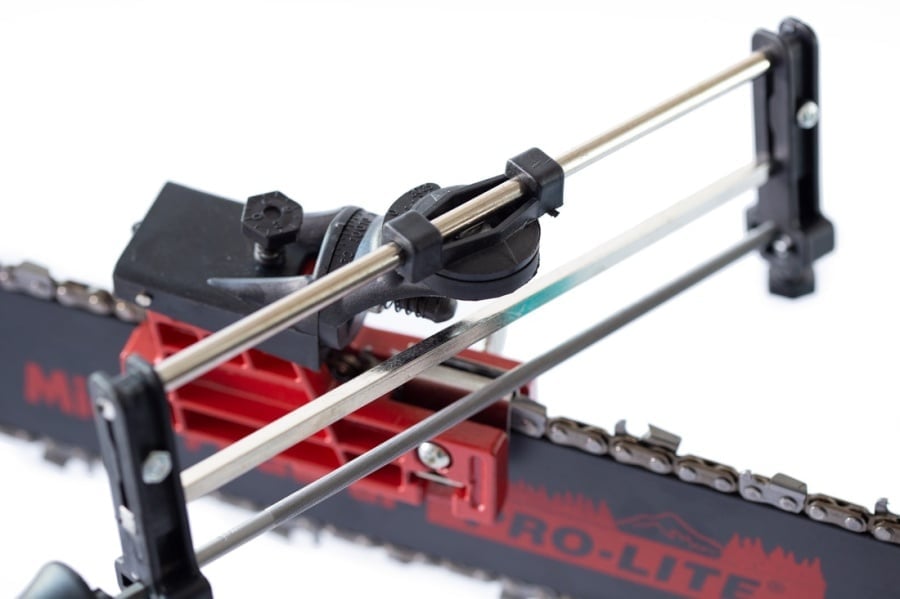 Dispozitiv de ascutit lanturi de drujba cu fixare pe lama.