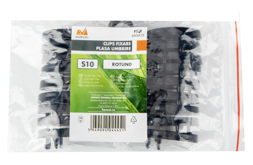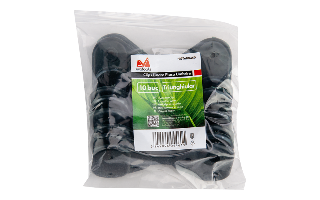 Clipsurile pentru Fixarea Plase de Umbrire EvoTools sunt confectionate din PVC. Se folosesc pentru fixarea plasei de umbrire. Au rezistenta la intemperii si se comporta bine in timp.