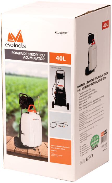Pompa de stropit cu acumulator și roți de transport este un echipament eficient și ușor de utilizat, ideal pentru lucrări de protecție a plantelor sau aplicarea de soluții pe suprafețe mari. Aceasta dispune de un acumulator puternic, care asigură o autonomie prelungită, permițând utilizatorului să o folosească timp îndelungat fără a fi necesar să o reîncarce frecvent. Roțile de transport adaugă un plus de mobilitate, facilitând deplasarea ușoară a pompei pe terenuri accidentate sau de dimensiuni mari. Designul compact și ergonomic al pompei face ca aceasta să fie ușor de manevrat și transportat, chiar și în condiții dificile. Este potrivită pentru utilizarea în agricultură, grădini și alte activități care necesită aplicarea de substanțe lichide.
