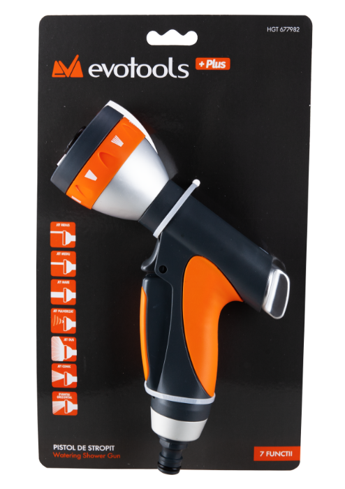 Instrument versatil si practic, conceput pentru a satisface nevoile multiple in activitati precum gradinaritul sau curatenia. Echipat cu 7 functii distincte, acest pistol ofera posibilitatea de a ajusta modul de stropire in functie de cerintele specifice. Manerul ergonomic si usor de utilizat face manevrarea simpla, iar designul compact il face potrivit pentru diverse aplicatii, de la udarea plantelor pana la curatarea suprafetelor. Indiferent daca este utilizat in gospodarie sau in gradina, acesta aduce un plus de eficienta si confort in activitatile cotidiene.