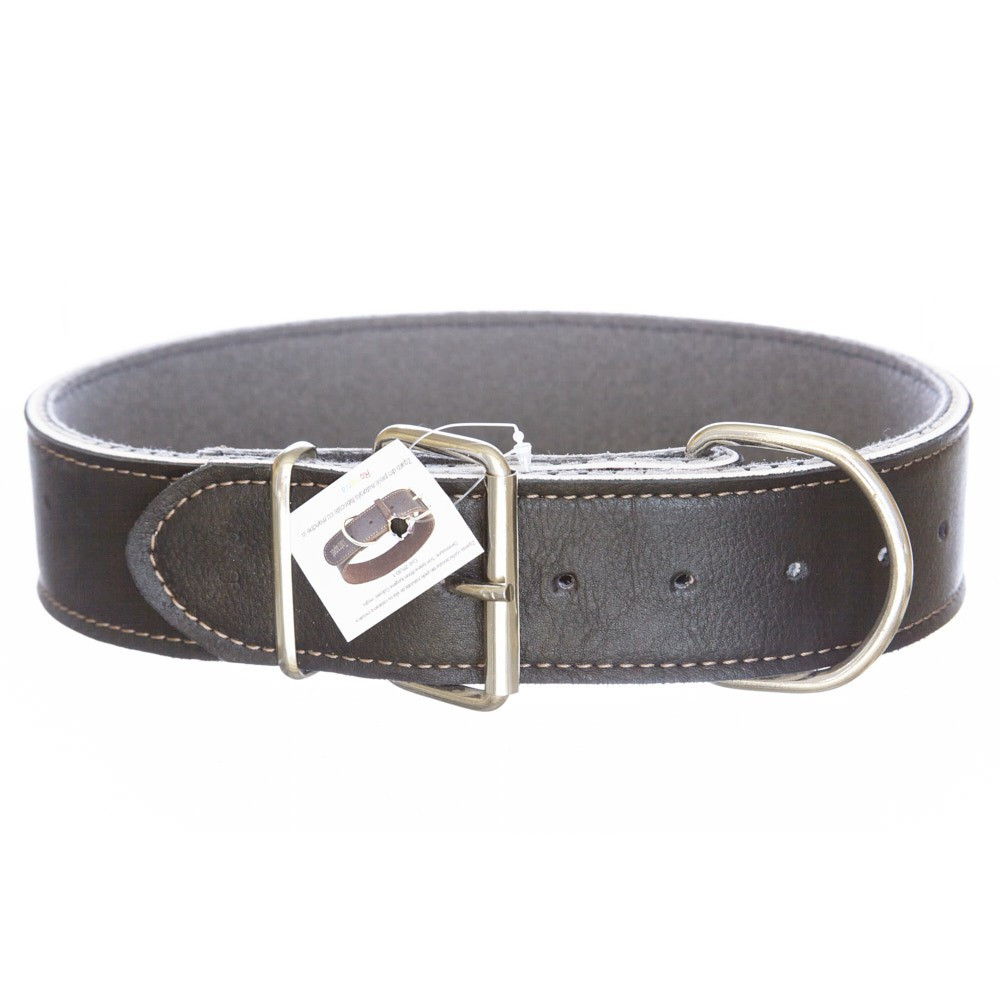 Zgarda confectionata din piele naturala de vita de grosime dubla, cu latimea de 5cm si lungimea de 80cm. Este recomandata pentru cainii de talie medie spre mare cu probleme pe lant sau in lesa.
